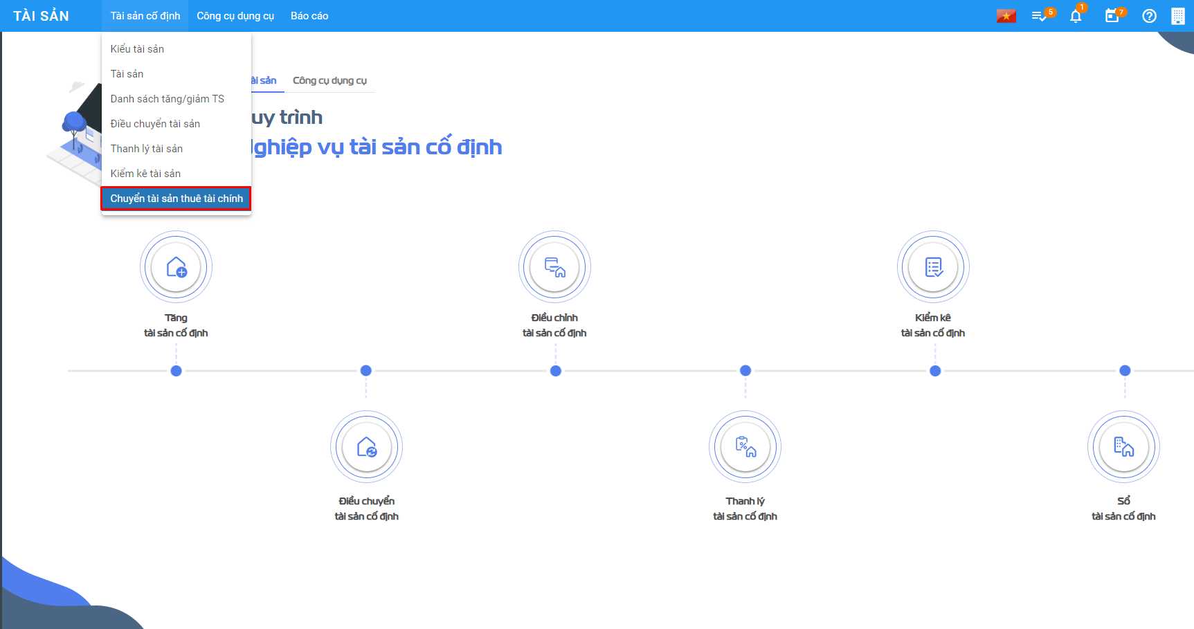 · Quản lý các chứng từ Chuyển tài sản thuê tài chính. Chi tiết nghiệp vụ tại đây