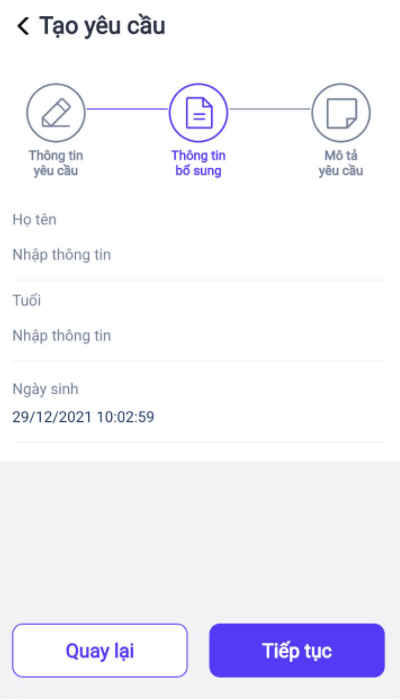 - Người dùng thực hiện nhập Thông tin yêu cầu